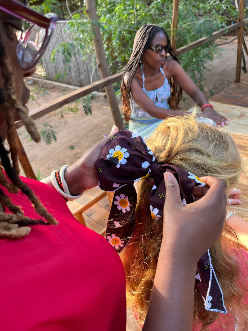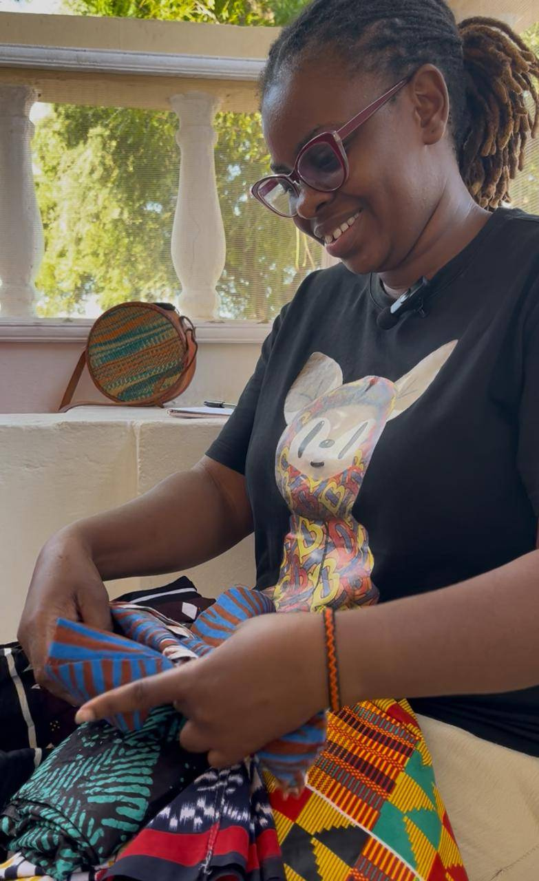 We began by sharing what drew each of us to this space and what it meant both personally and professionally. This openness set the tone for our early activities, from a cookie tasting session featuring Flora’s homemade cookies, where we brainstormed new flavors, to a mindset workshop and a product development exercise that helped Careen transform her passion for braiding hair into a tangible product: handmade hair bows crafted from Ankara fabric offcuts, the by-products of our clothing production.