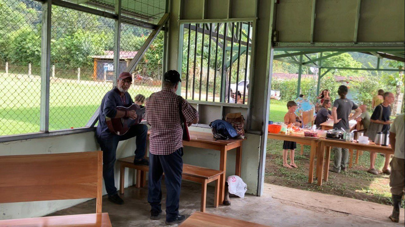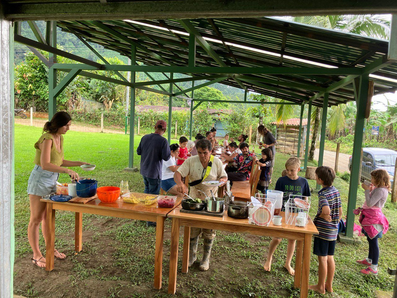 We chose to eat outside in the recently built structure, from where we could enjoy the view of the mountain wall of Las Tumbas. Kids always love to play and run on the soccer field. Some people who didn't know that this was happening just stopped by, got a plate, and joined the event. That is the natural effect of using the center.